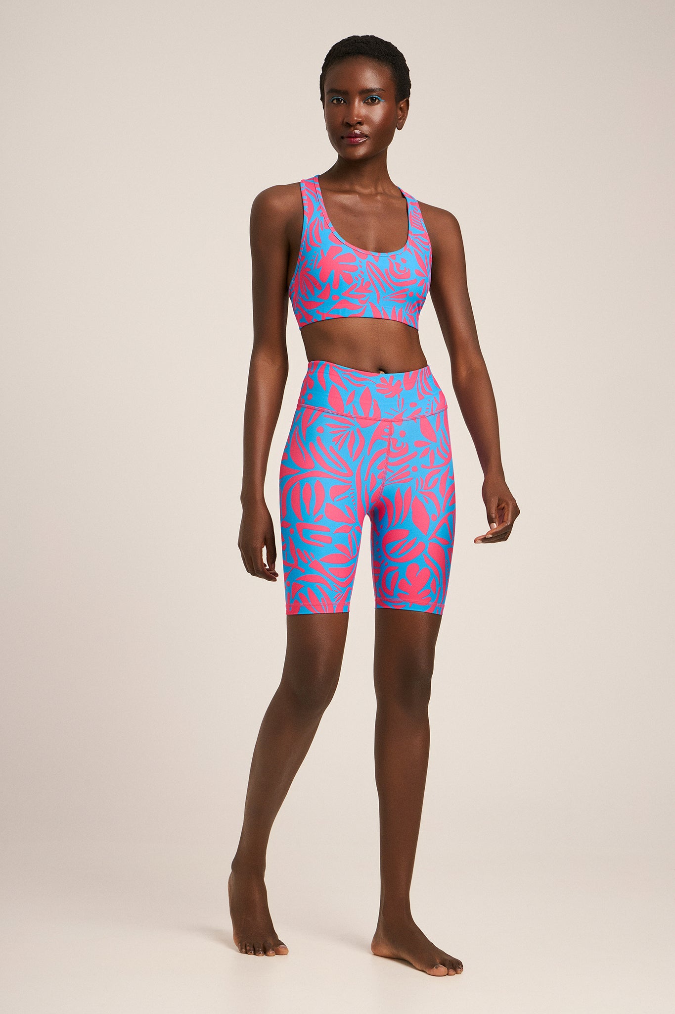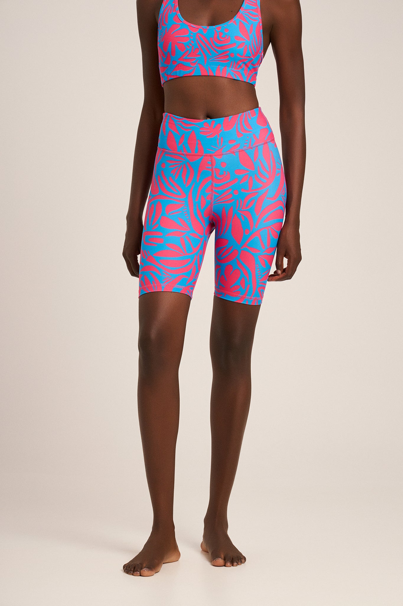 Aθλητικό biker κολάν με tribal leaves print | Φούξια