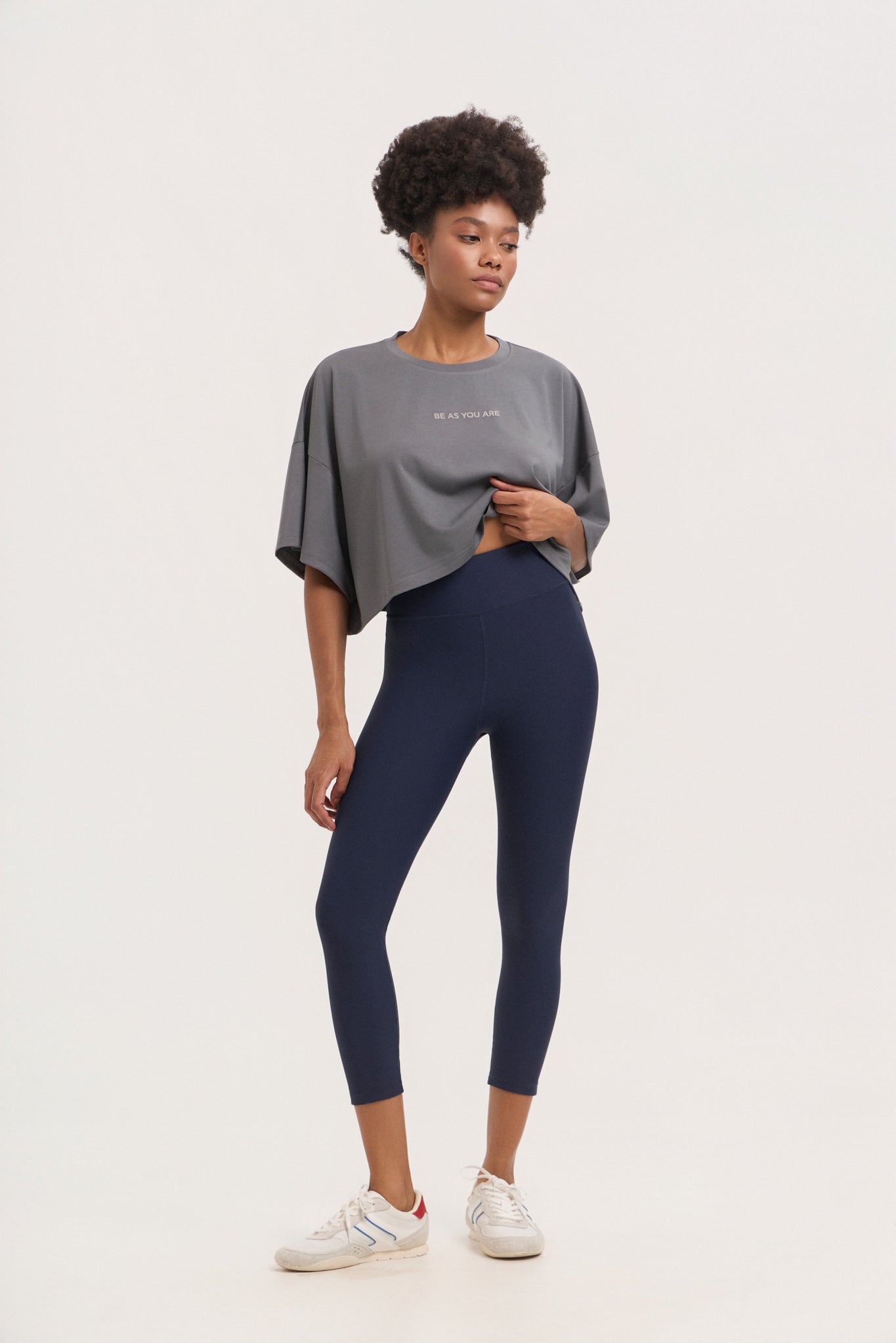 Ψηλόμεσο αθλητικό crop κολάν DRY SHELL. Λάστιχο στη μέση και ειδική σούρα στο πίσω μέρος που ανασχηματίζει (push up) και ανορθώνει τους γλουτούς με τη τεχνολογία butt lift.