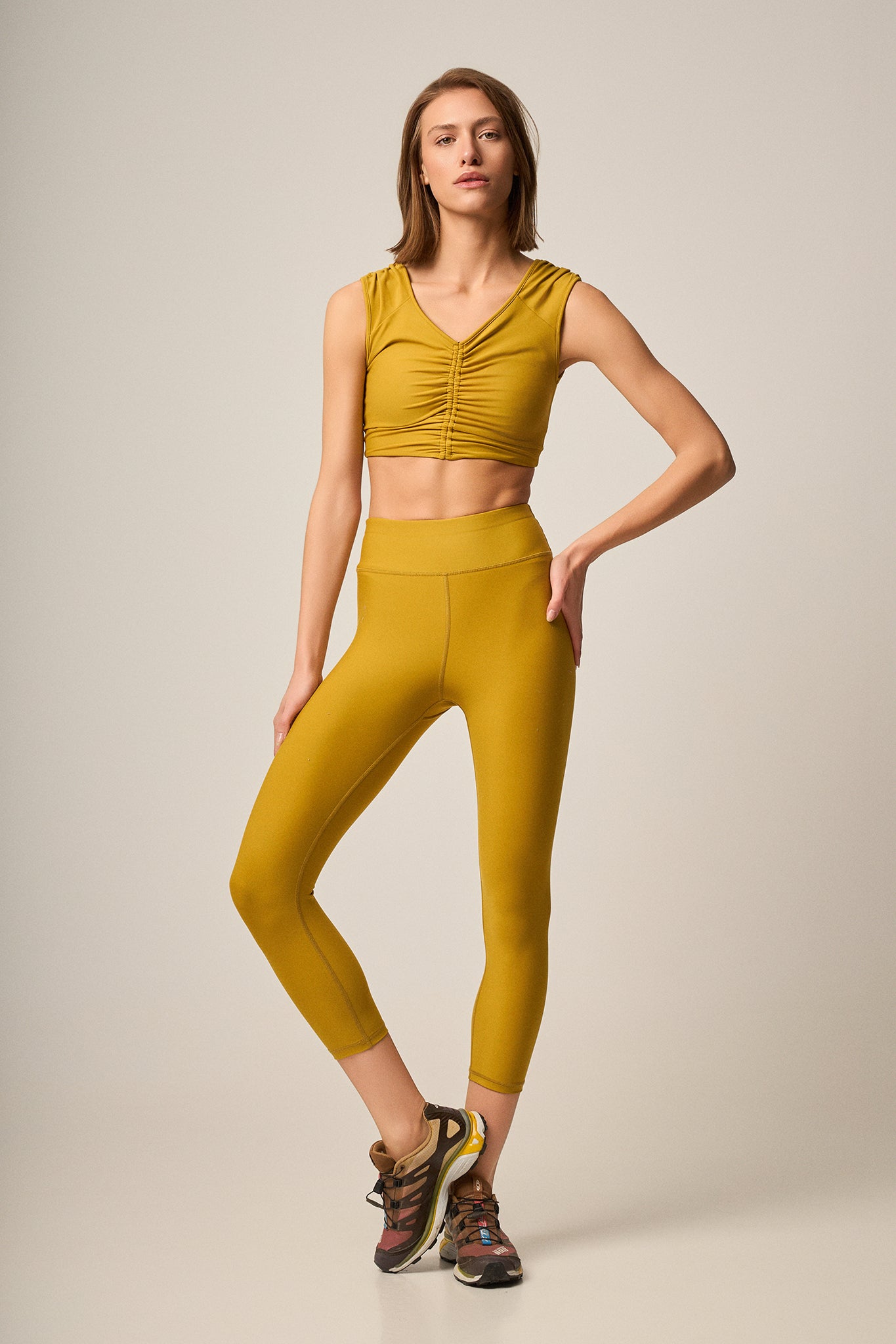 Ύφασμα αθλητικών προδιαγραφών και συμπίεσης που στηρίζει και αναδυκνύει τη σιλουέτα αλλά και ταυτόχρονα απομακρύνει τον ιδρώτα. Άνετη εφαρμογή και στήριξη κατά τη διάρκεια της προπόνησης.
