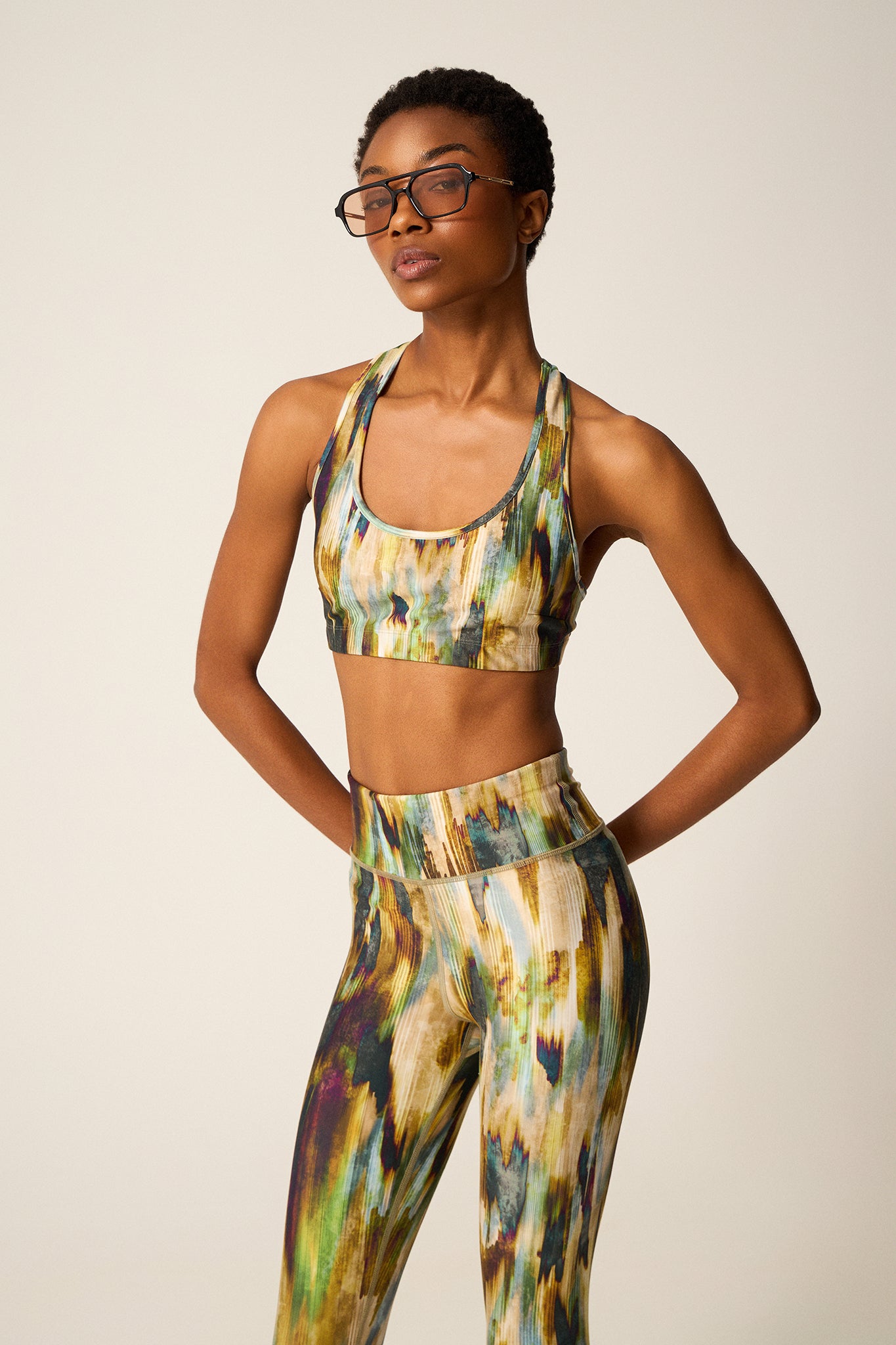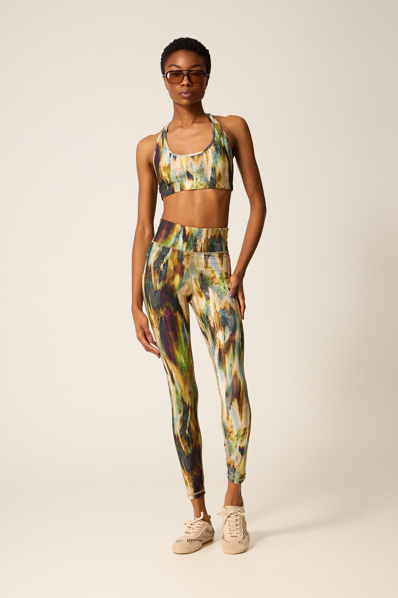 Τοπ με υψηλή στήριξη, χωρίς εσωτερικά cups. Στρογγυλή λαιμόκοψη και αθλητική πλάτη. Λάστιχο στο κάτω μέρος για καλύτερη στήριξη. Ψηλόμεσο κολάν με push up εφαρμογή και ειδική σούρα στο πίσω μέρος που προσφέρει butt-lift, που σμιλεύει και κολακεύει τους γλουτούς. Άνετη γραμμή.