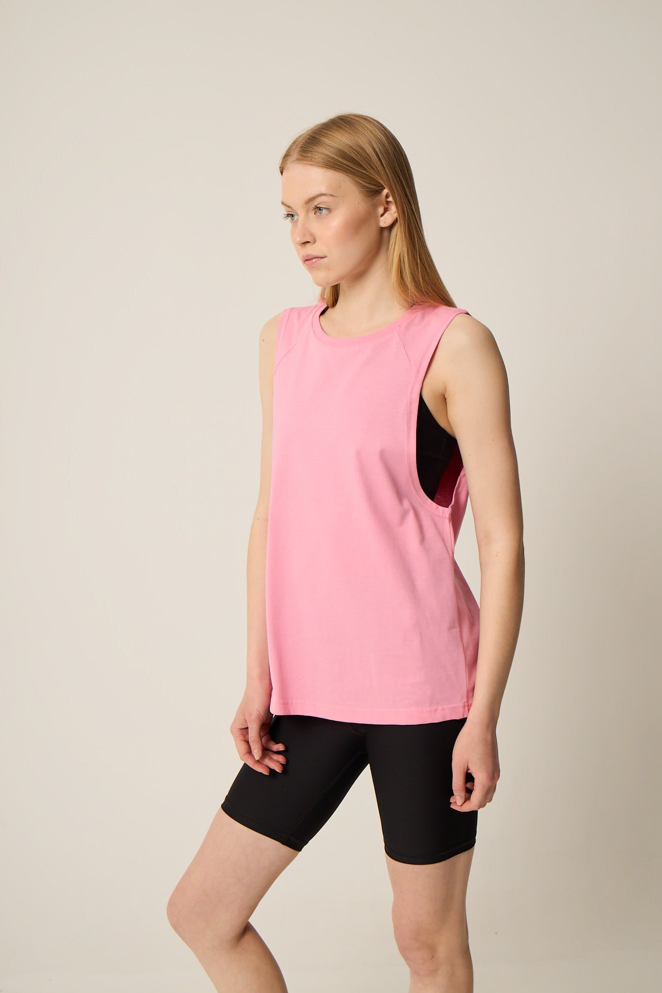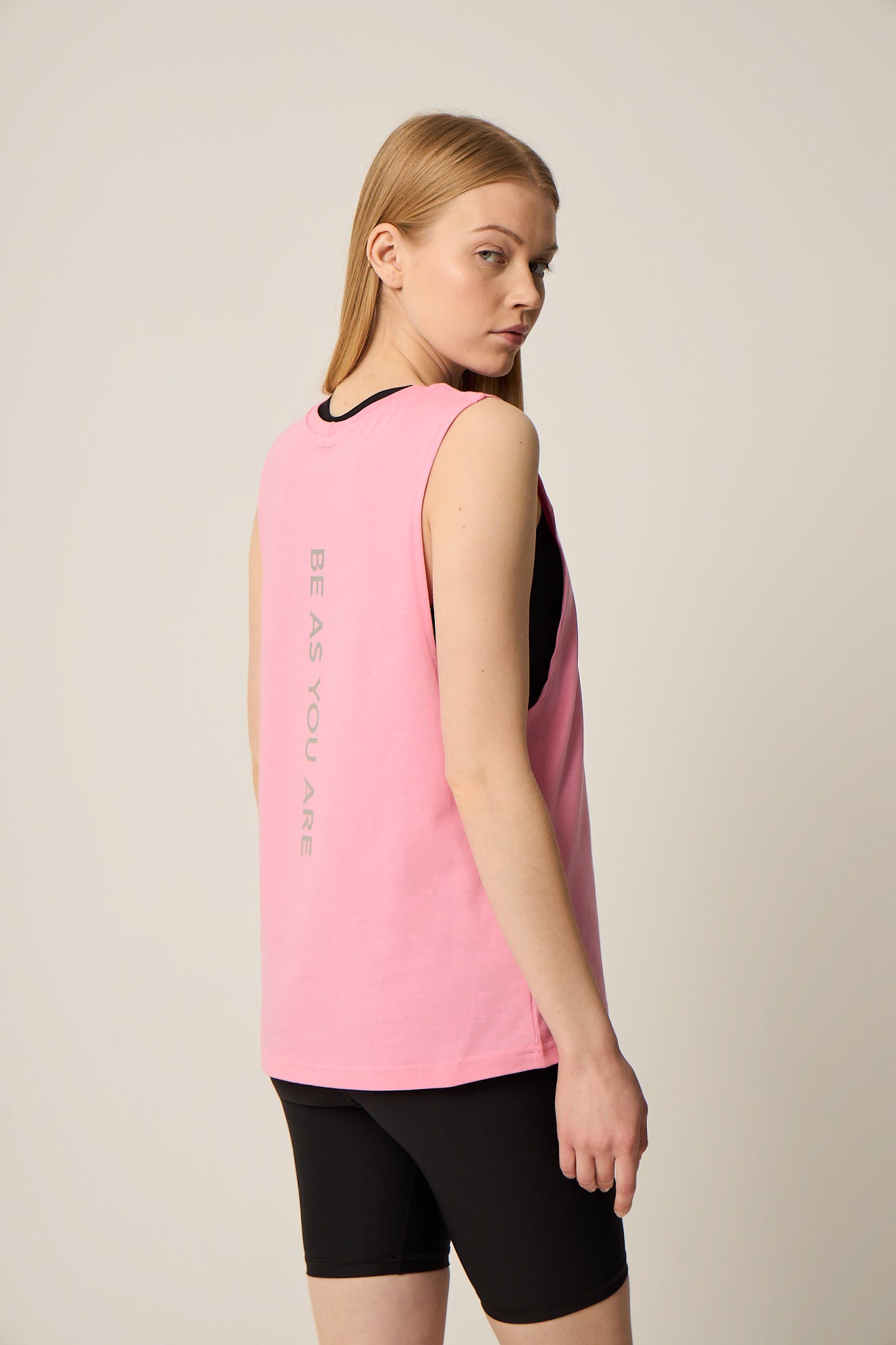 Αμάνικη αθλητική μπλούζα με κλειστή στρογγυλή λαιμόκοψη και σούρα στο τελείωμα. Λεπτομέρεια reflective τύπωμα "BE AS YOU ARE" στο πίσω μέρος.