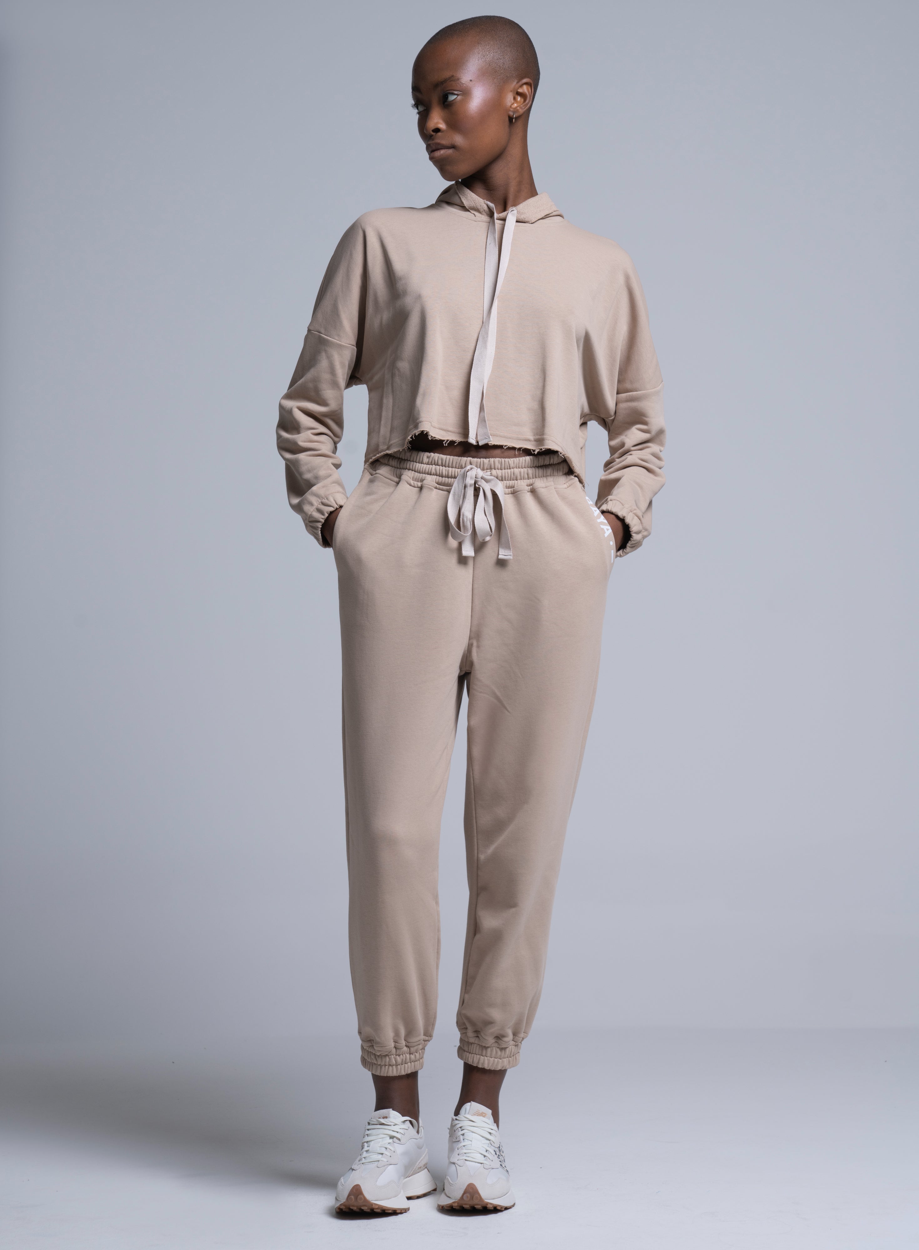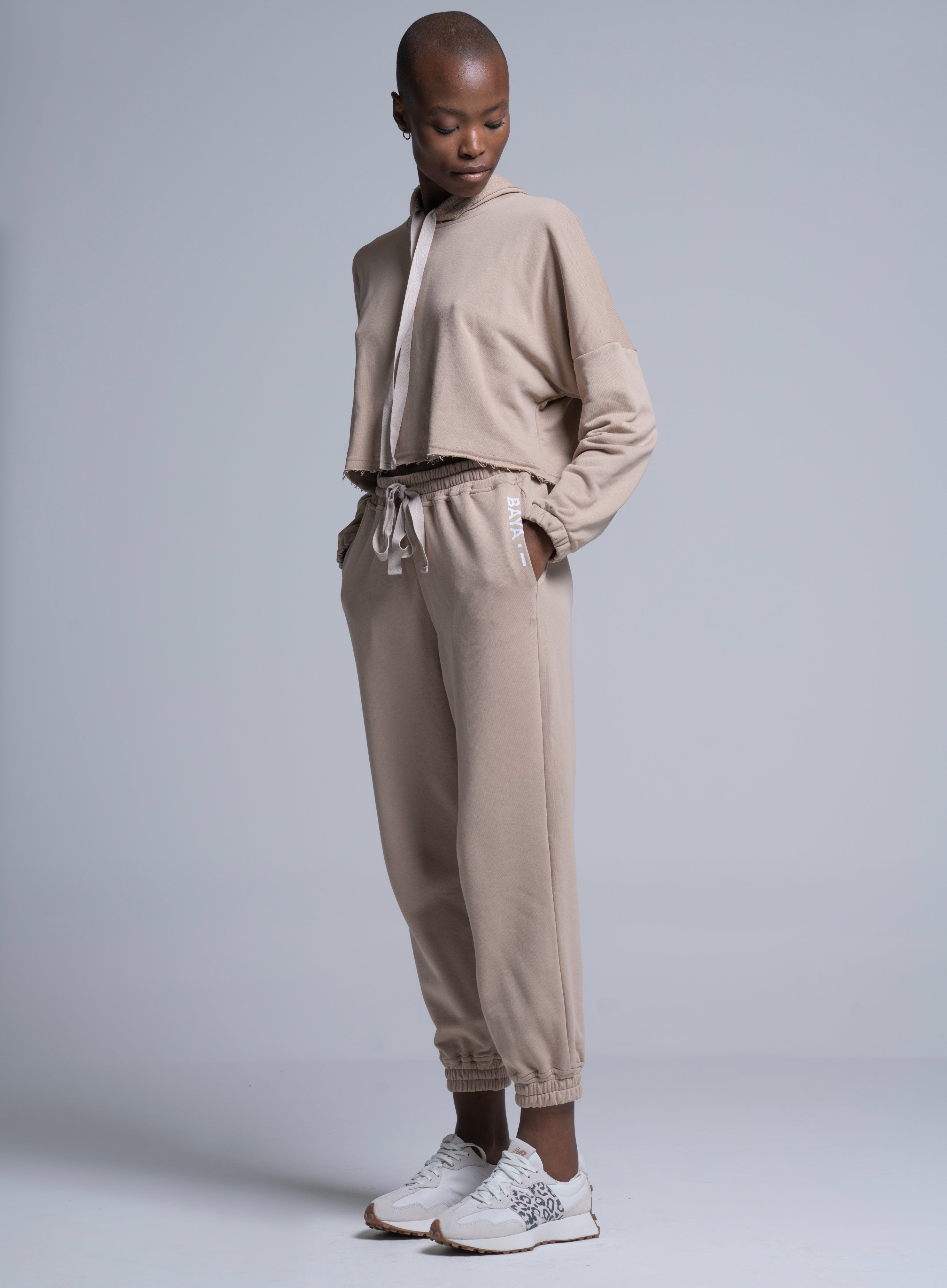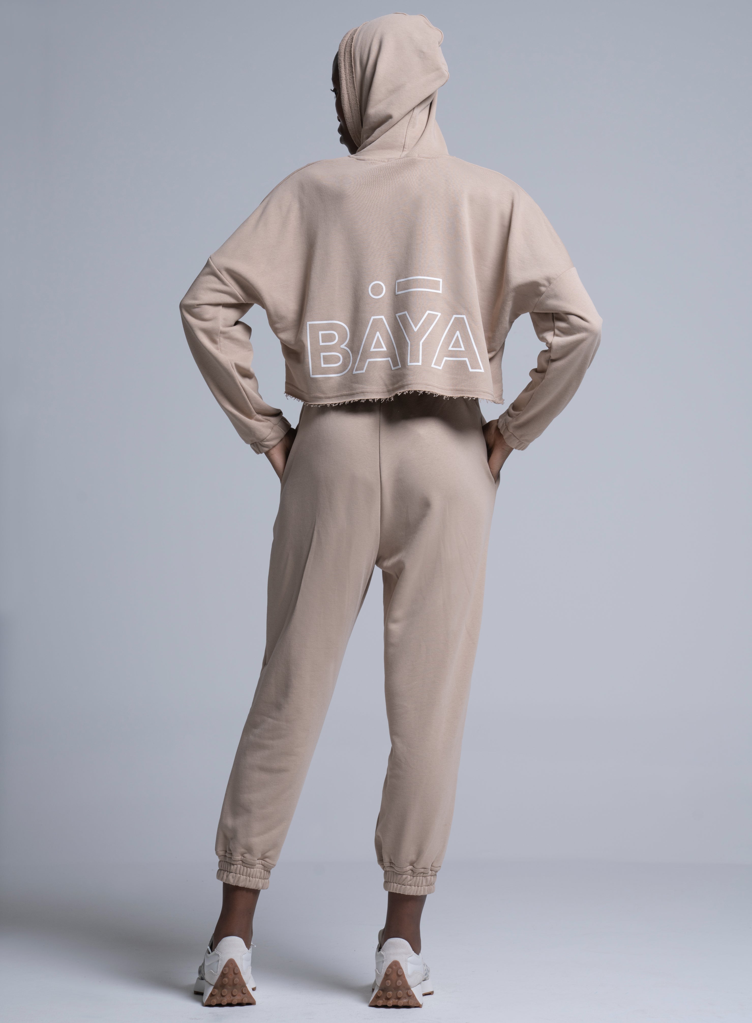 Παντελόνι αθλητικής φόρμας με κρυφές τσέπες στο πλάι. Λάστιχο και ρυθμιζόμενο κορδόνι στη μέση με τύπωμα "BE AS YOU ARE" κάτα μήκος του κορδονιού. Λάστιχο στο τελείωμα. Τύπωμα "BAYA" δίπλα από την αριστερή τσέπη.