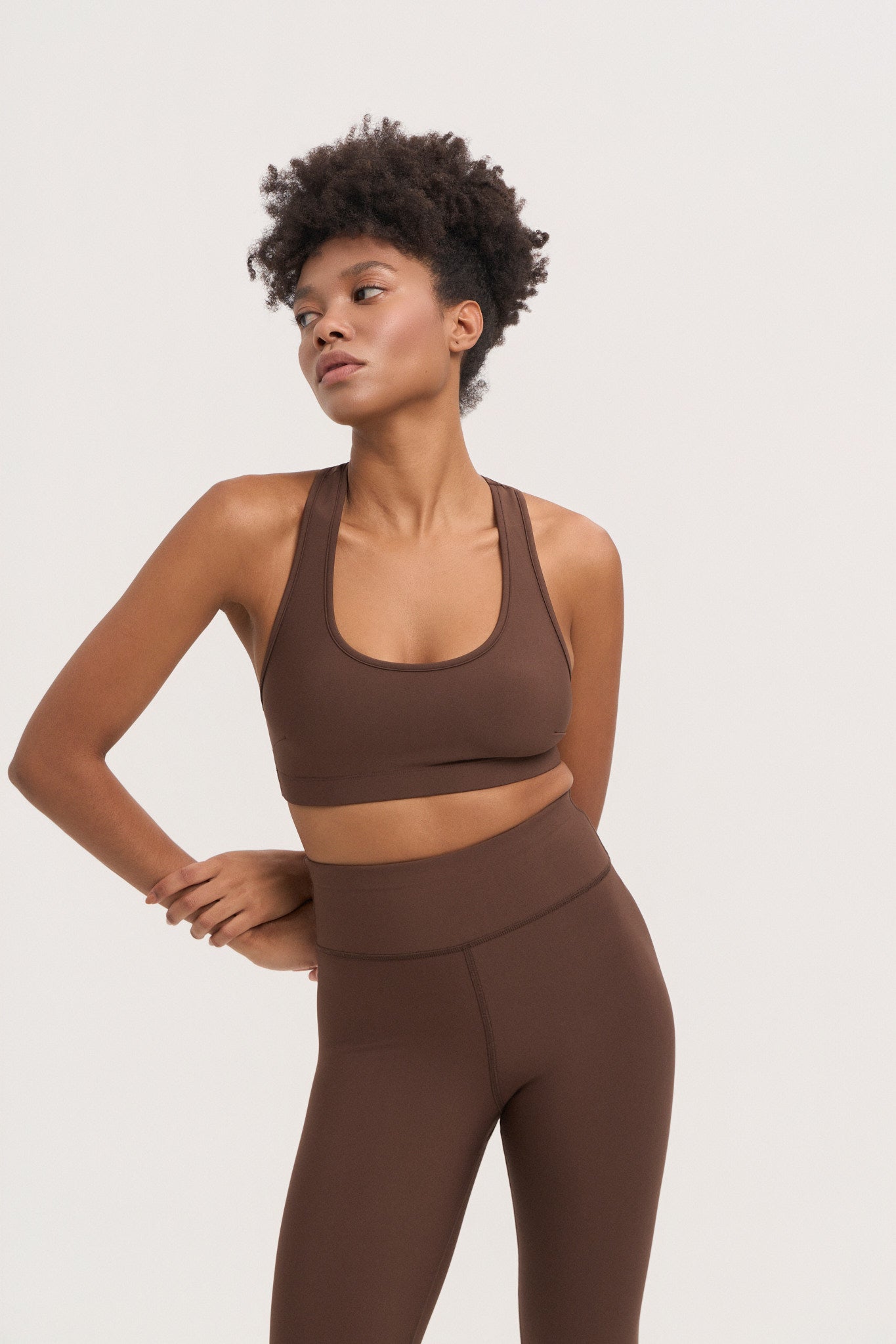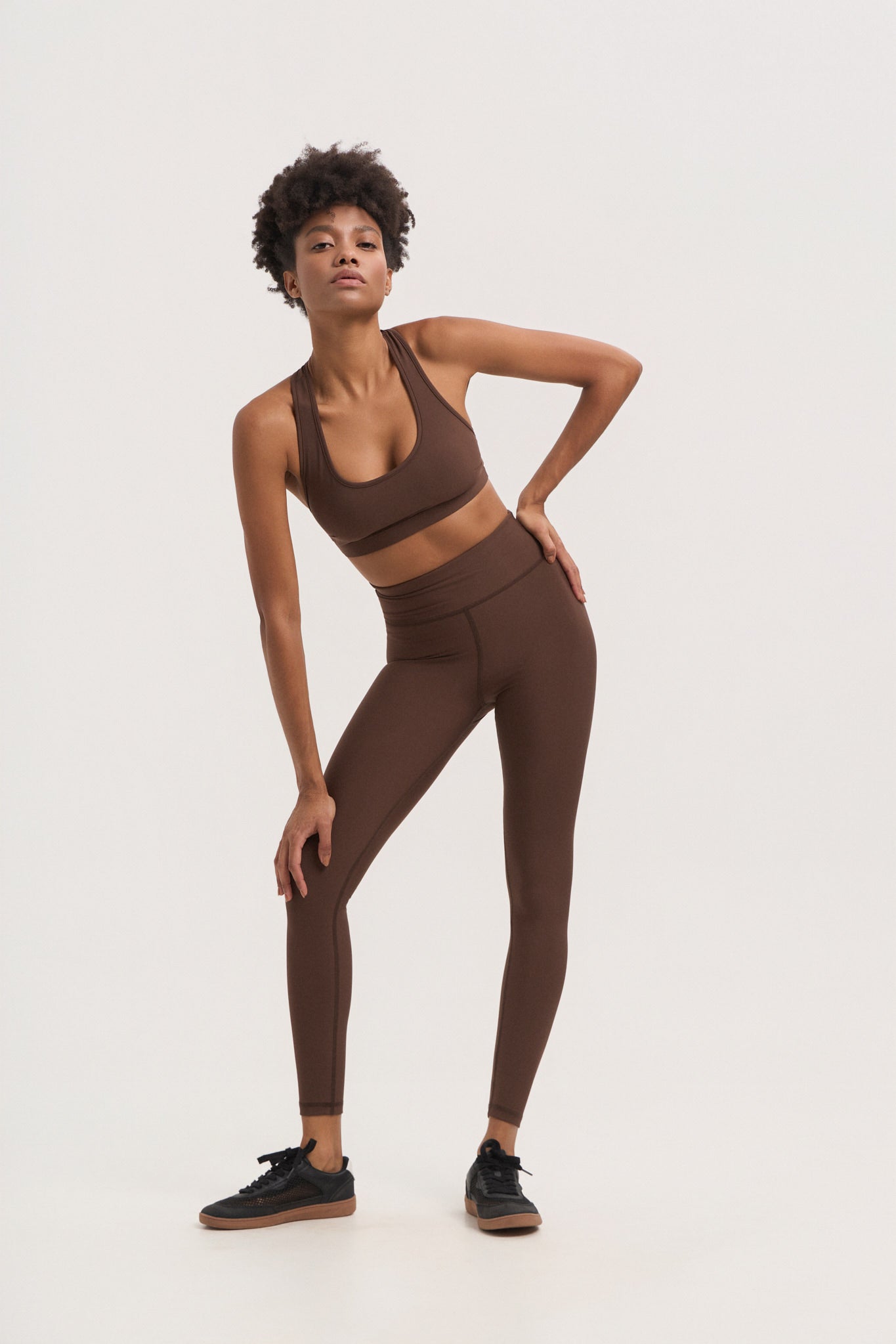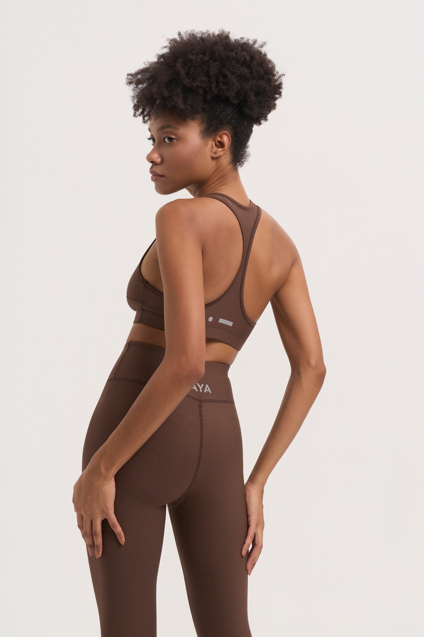 Τοπ με υψηλή στήριξη, χωρίς εσωτερικά cups. Στρογγυλή λαιμόκοψη και αθλητική πλάτη. Λάστιχο στο κάτω μέρος για καλύτερη στήριξη. Ψηλόμεσο κολάν με push up εφαρμογή και ειδική σούρα στο πίσω μέρος που προσφέρει butt-lift, που σμιλεύει και κολακεύει τους γλουτούς. Άνετη γραμμή.