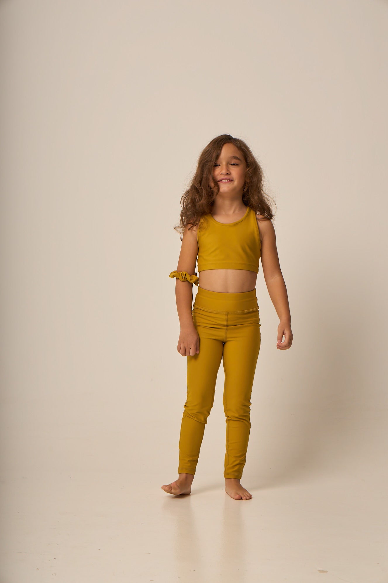 Σετ τοπ και κολάν. Δώρο scrunchie με το αντίστοιχο print. Τοπ με στρογγυλή λαιμόκοψη και αθλητική πλάτη. Ψηλόμεσο κολάν με λάστιχο στη μέση.
