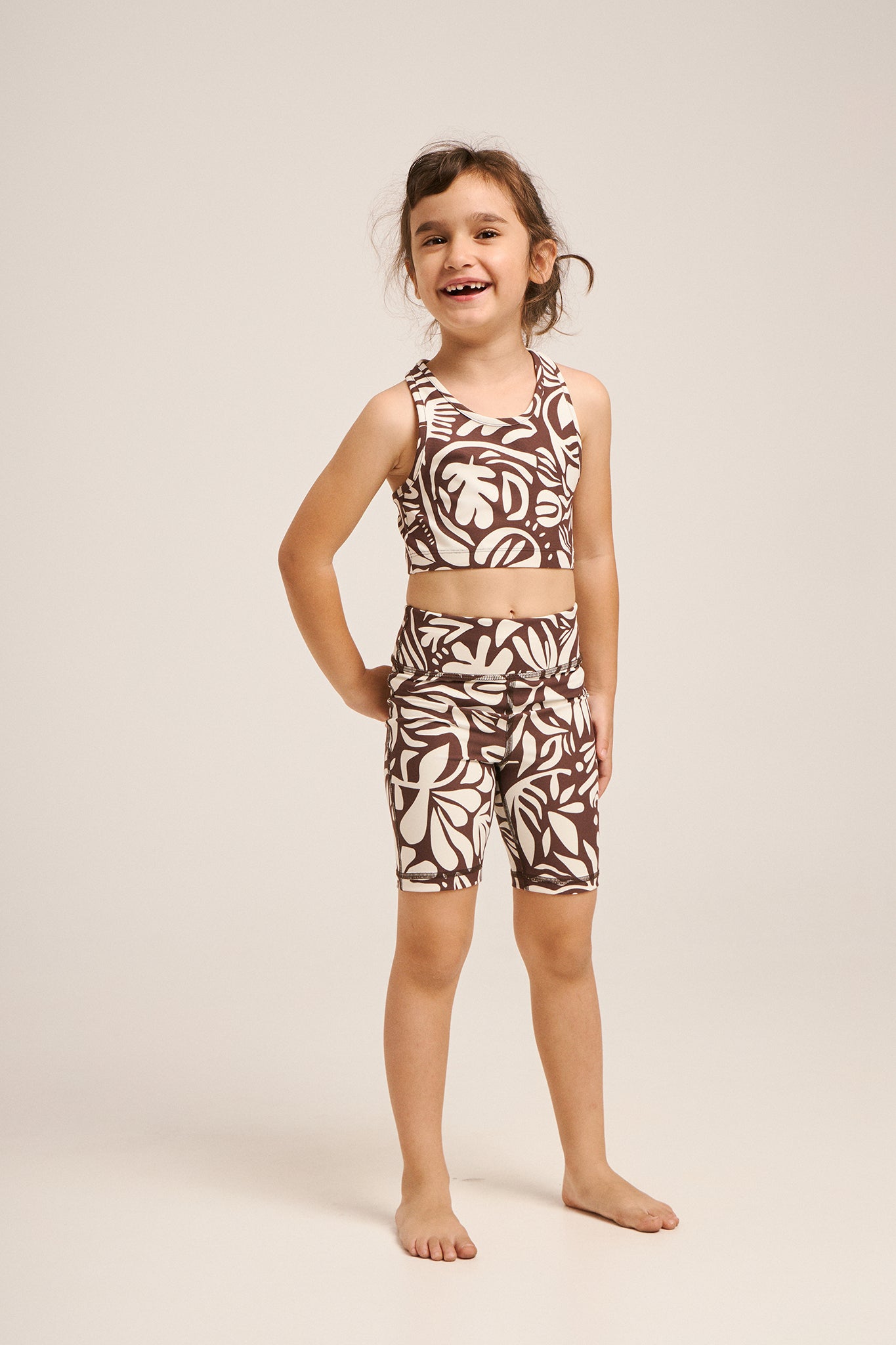 Τοπ με στρογγυλή λαιμόκοψη και αθλητική πλάτη. Ψηλόμεσο biker κολάν με λάστιχο στη μέση.