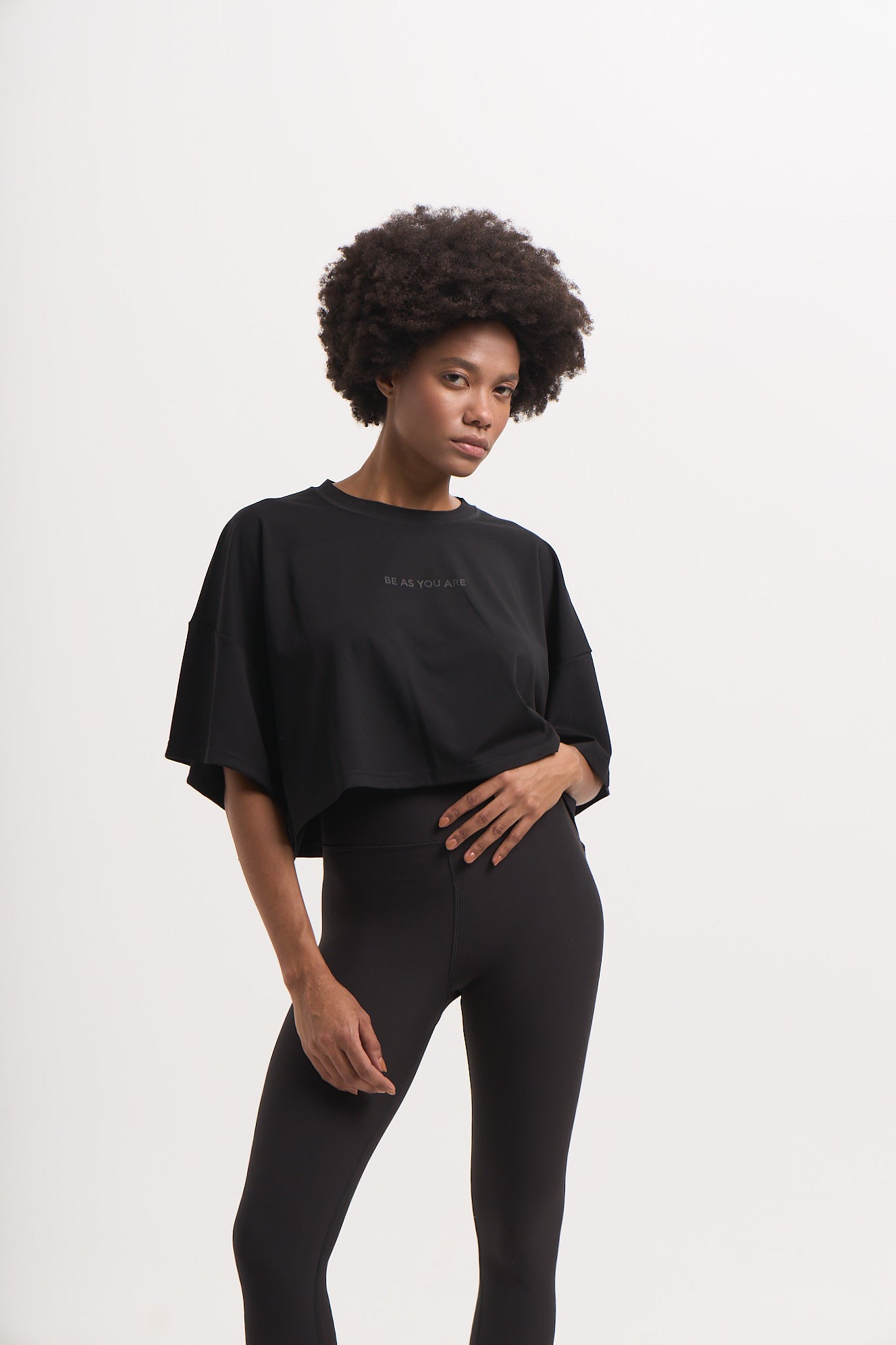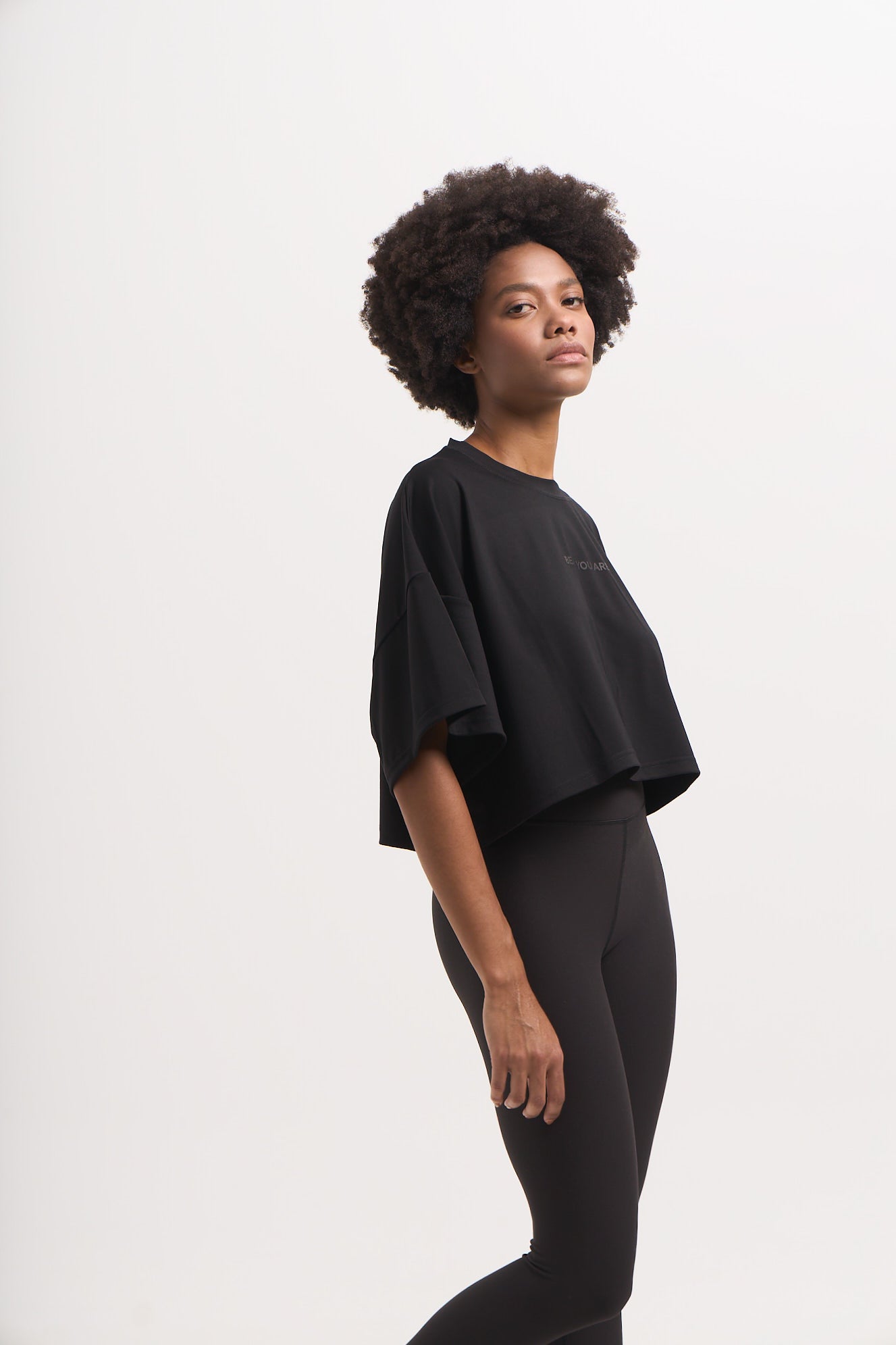 Αθλητικό Cropped τοπ με κλειστή στρογγυλή λαιμόκοψη. Ανάγλυφο τύπωμα στο μπροστινό μέρος.