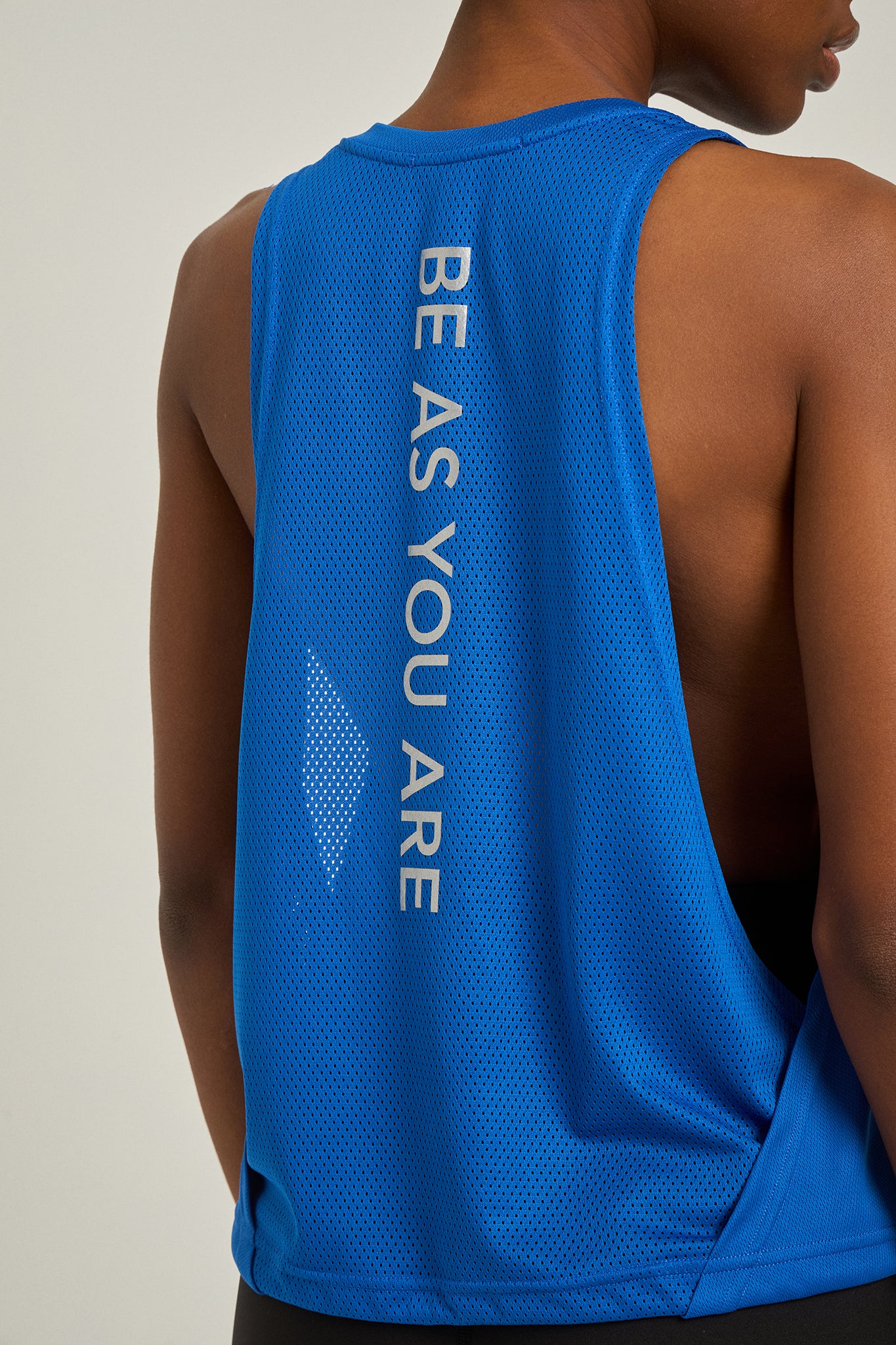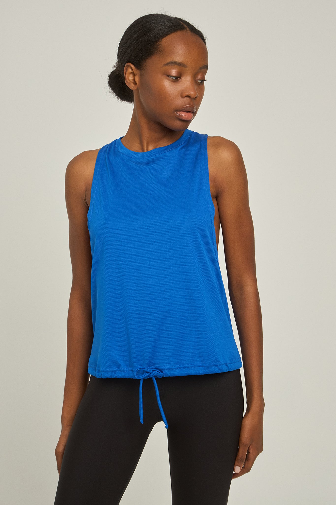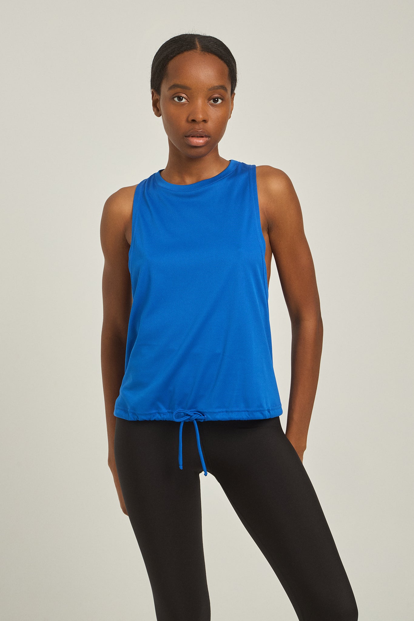 Aμάνικη MESH μπλούζα με σούρα στο τελείωμα | Μπλε