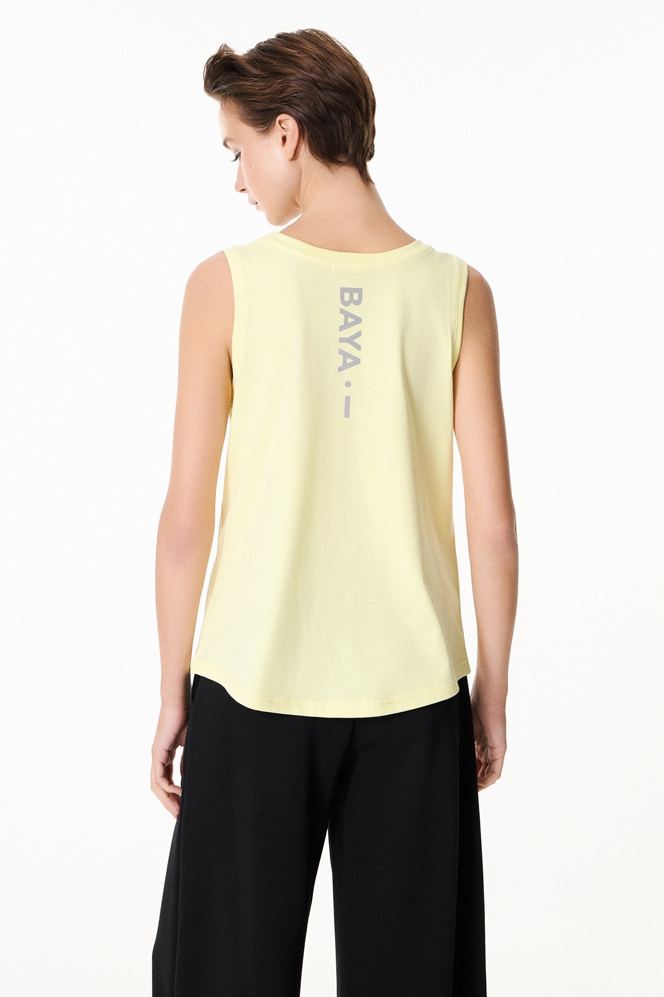 Αμάνικη αθλητική μπλούζα με κλειστή στρογγυλή λαιμόκοψη και σούρα στο τελείωμα. Λεπτομέρεια reflective τύπωμα "BAYA" στο πίσω μέρος.