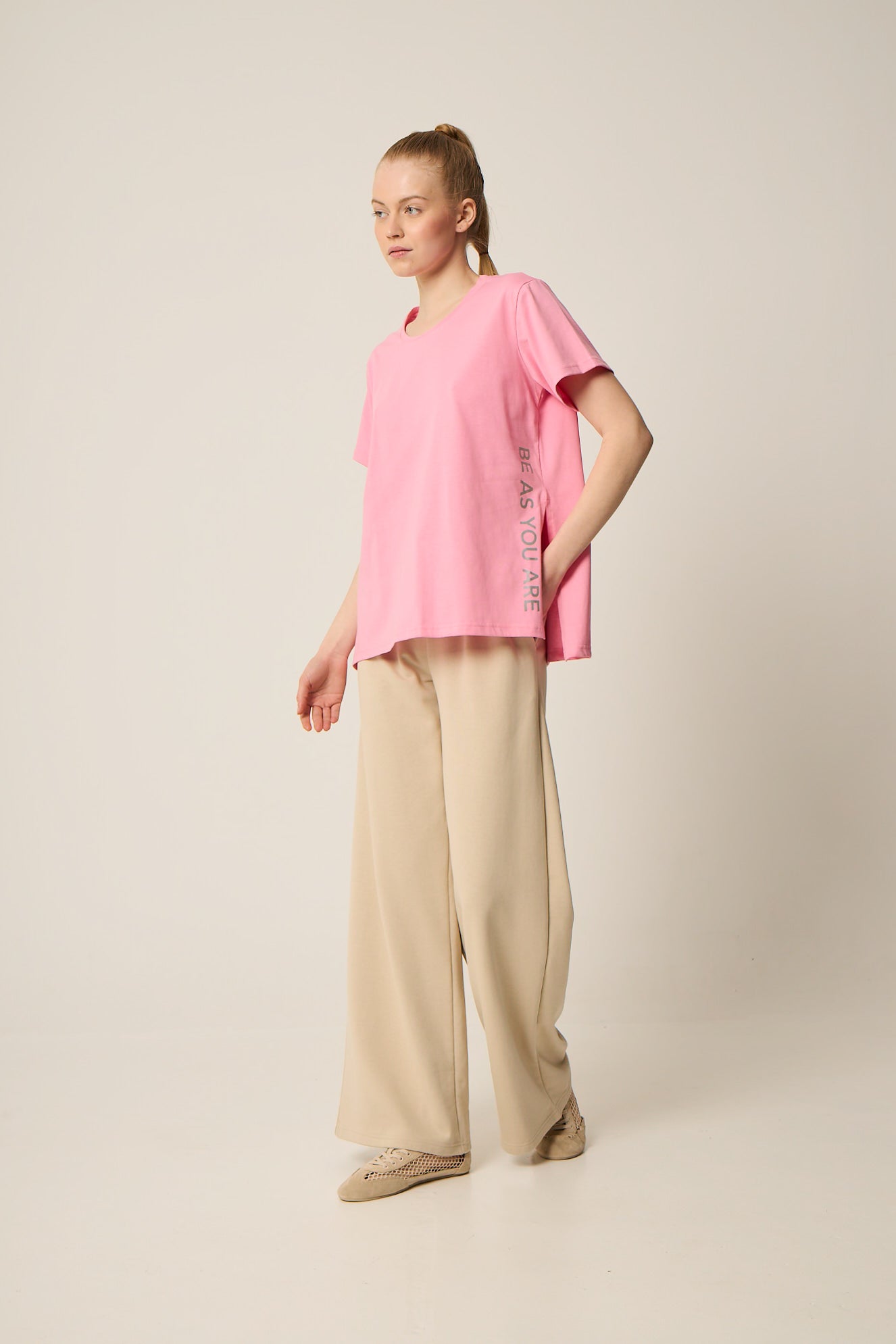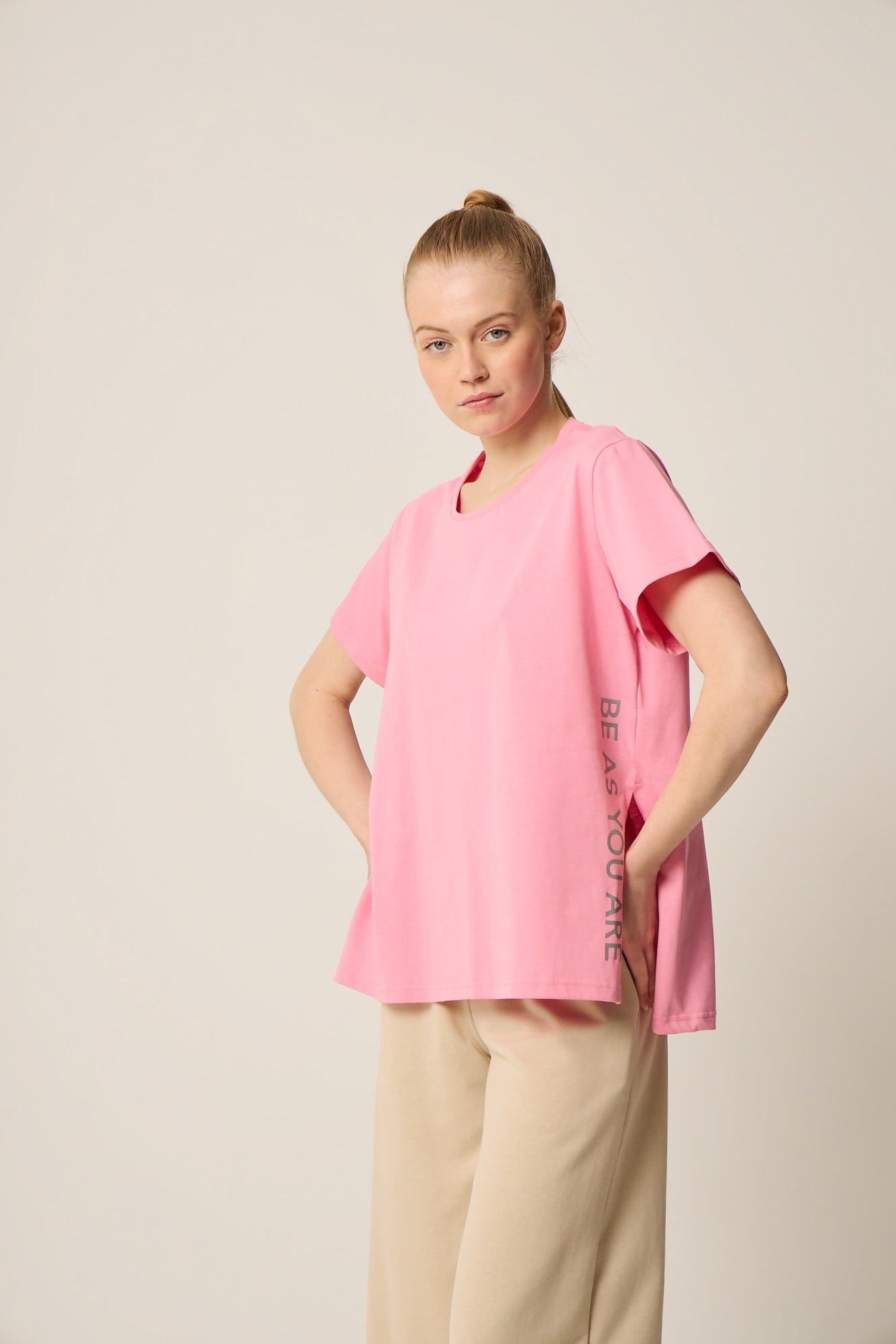 Αθλητικό t-shirt με logo στο πλάι | Ροζ