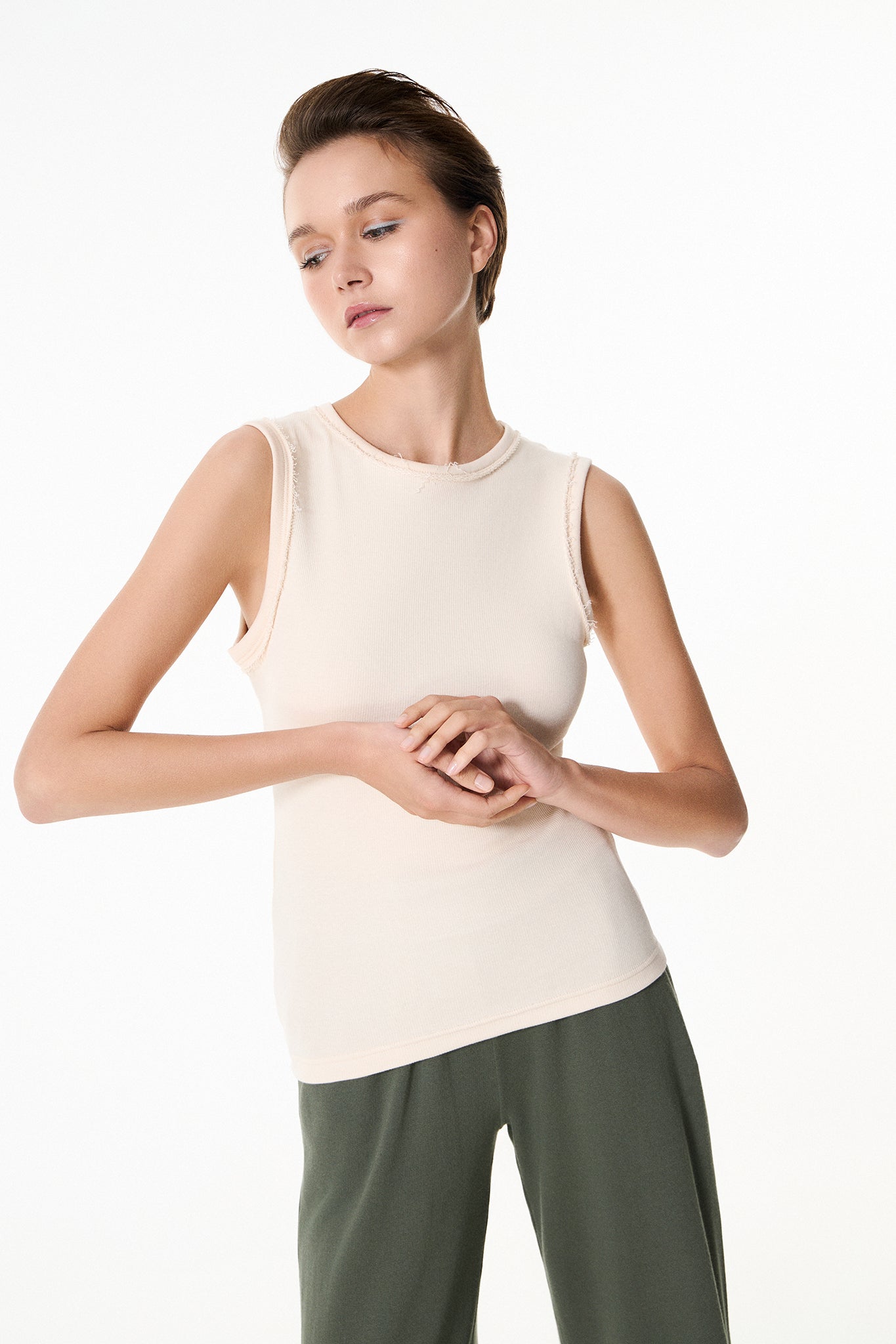 Αμάνικο Chromatic τοπ με κλειστή στρογγυλή λαιμόκοψη.