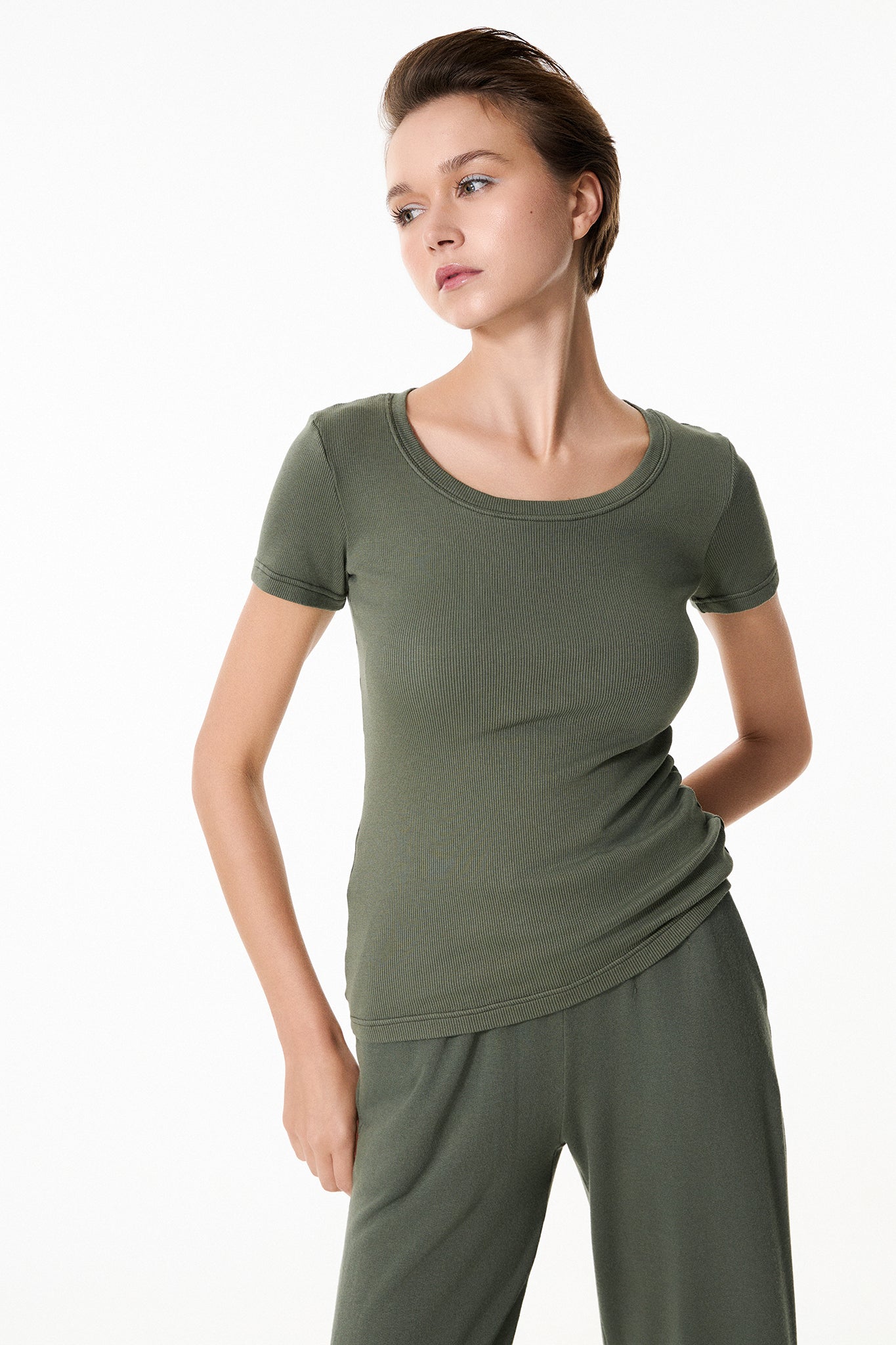Κοντομάνικο top Chromatic με ανοιχτή στρογγυλή λαιμόκοψη.