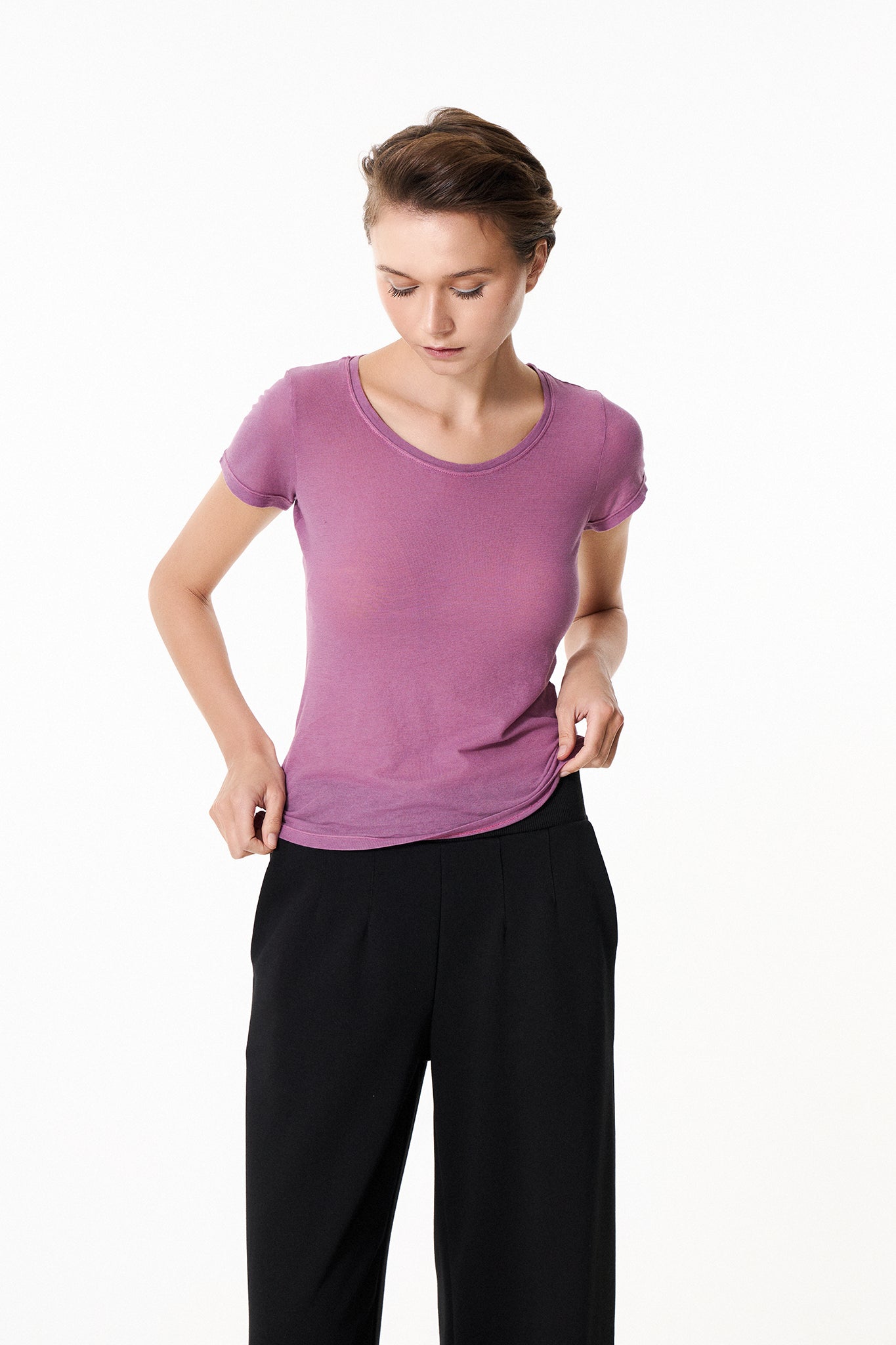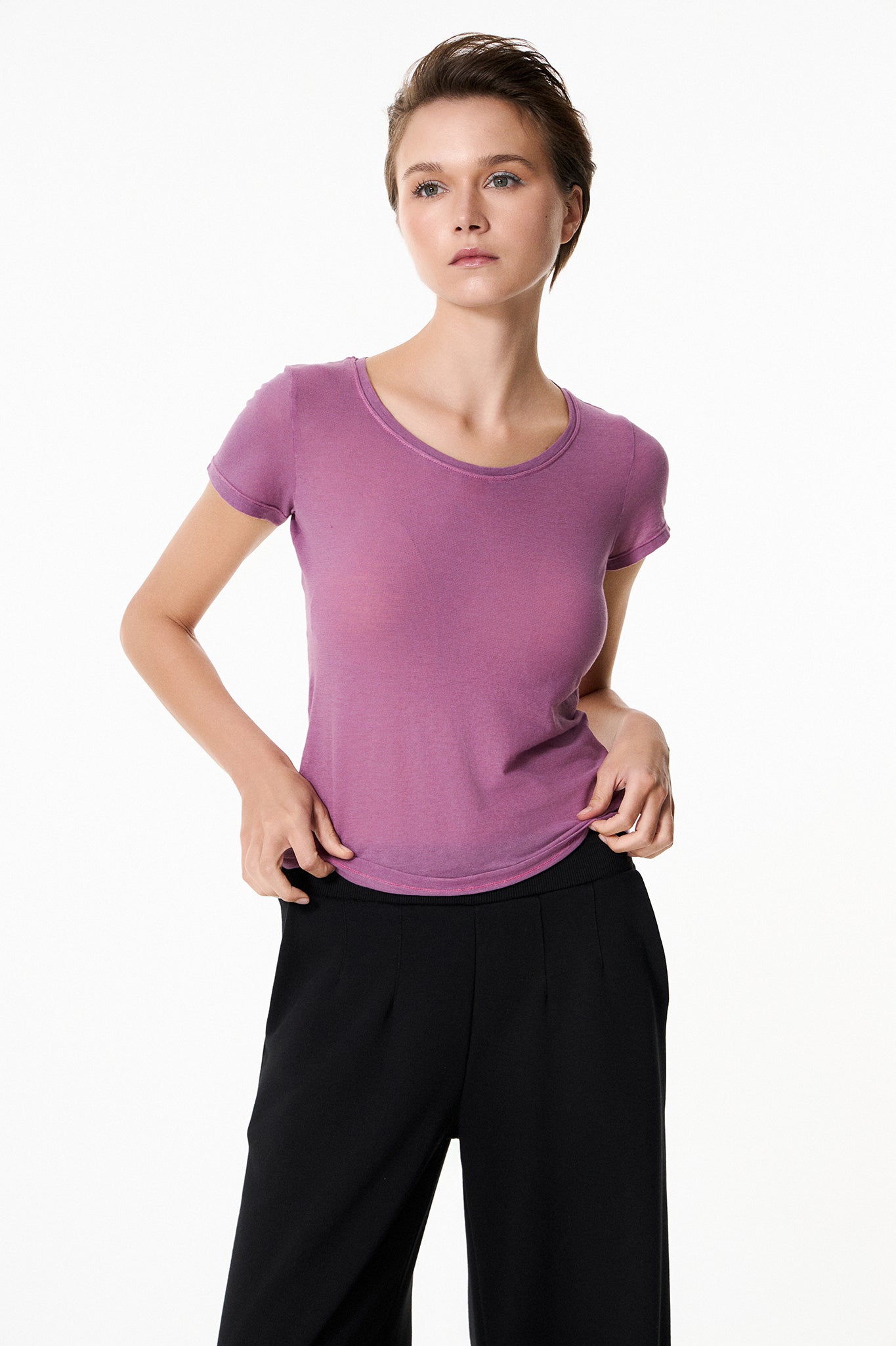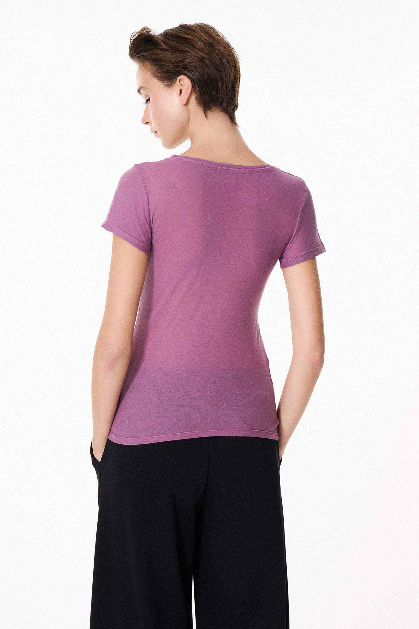 Κοντομάνικο top Chromatic με ανοιχτή στρογγυλή λαιμόκοψη.
