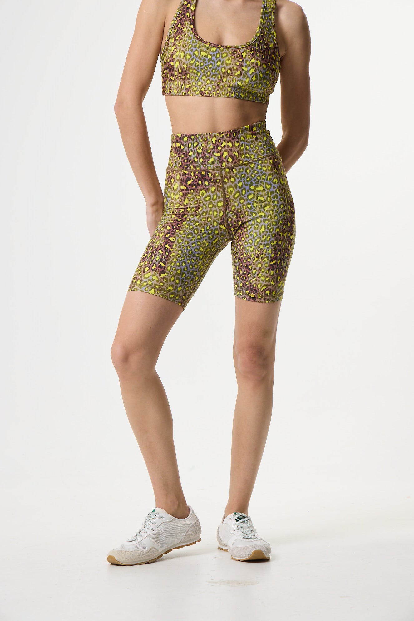 Aθλητικό biker κολάν με powder roar leopard print | Butter Yellow
