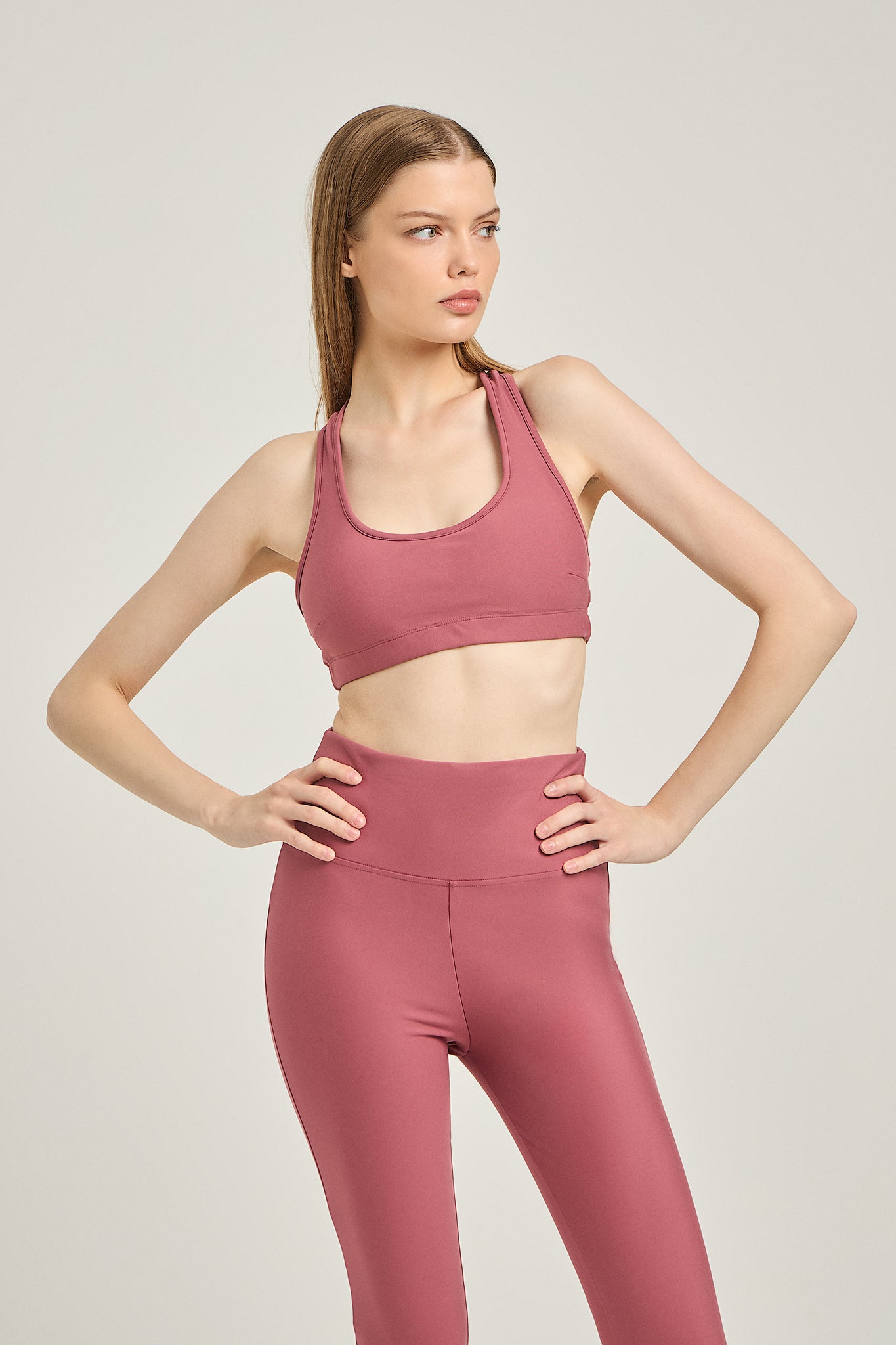 Sports bra with a round neckline and a sports back. Logo on the back.