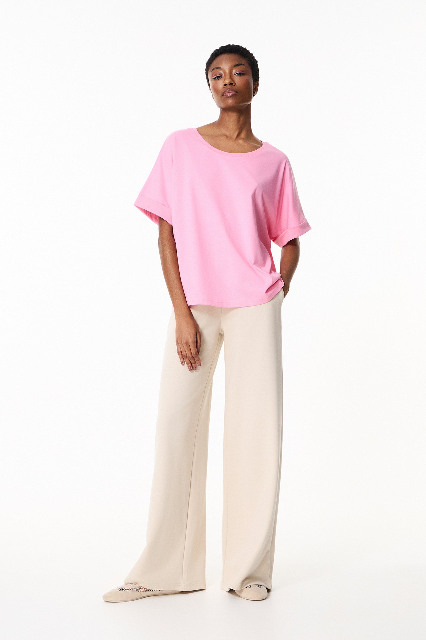 Sleeveless sports top with a closed round neckline and a ruffle at the hem. Reflective "BAYA" print detail on the back.