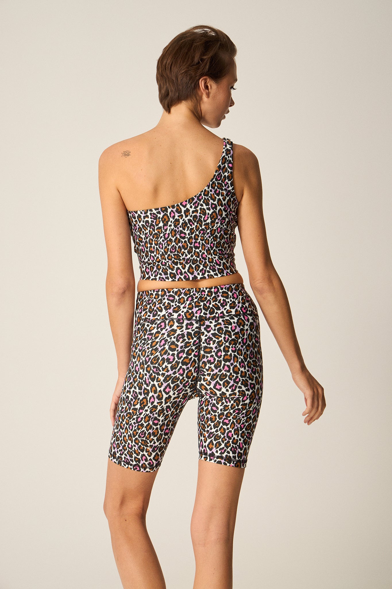 One-shoulder bra with pink & brown print | Leopard