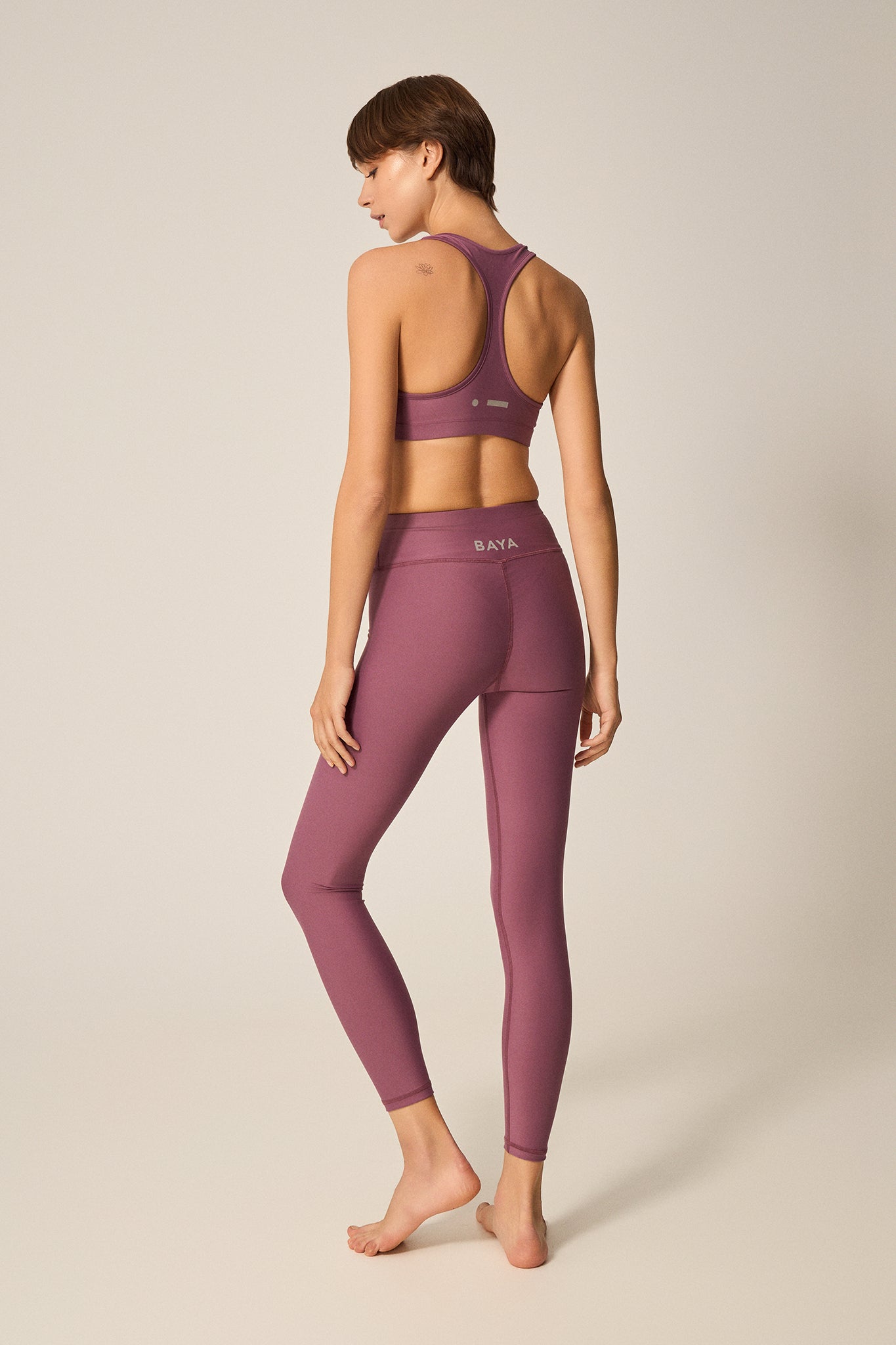 Top and leggings set. Ideal for intense exercise. Top with high support, without internal cups. Round neckline and athletic back. Elastic at the bottom for better support. High-waisted leggings with push up application and special pleats at the back that offer butt-lift, which sculpts and flatters the buttocks . Comfortable line.