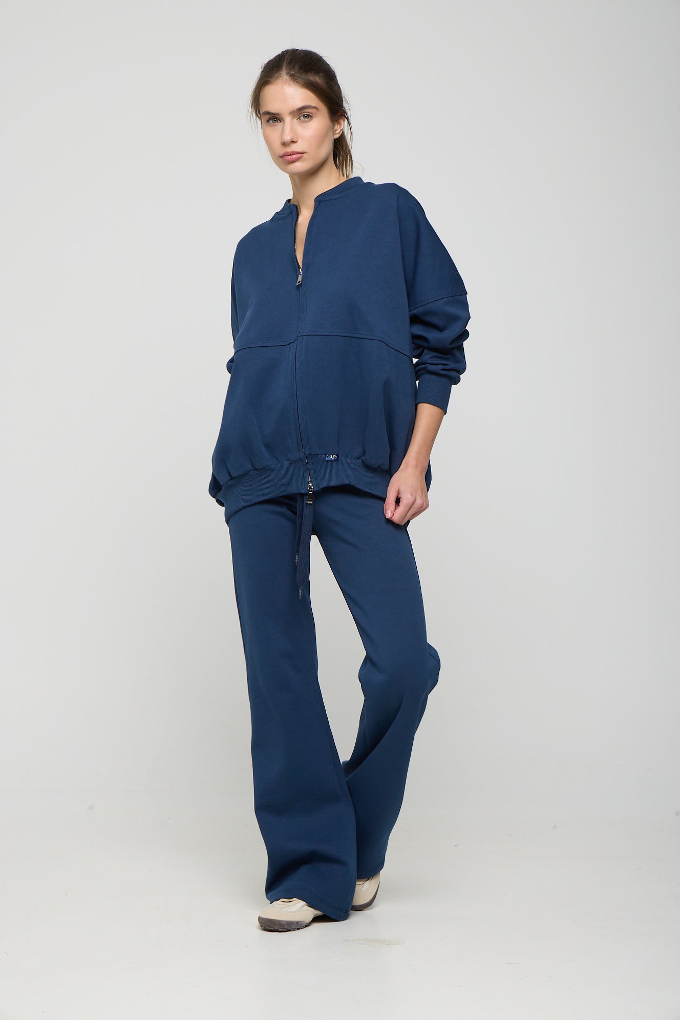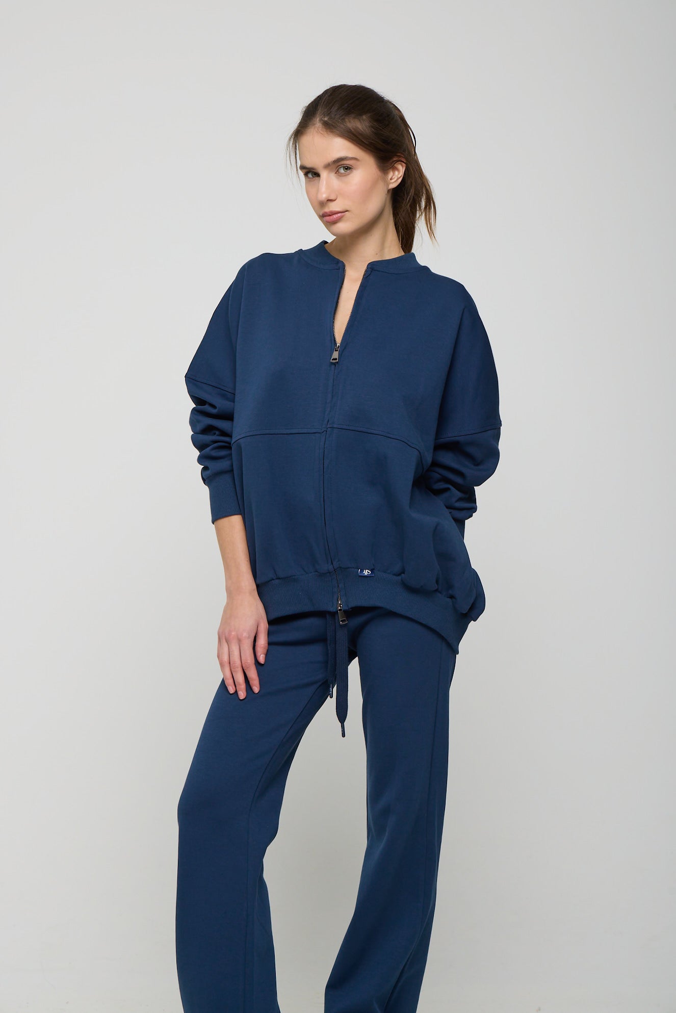 Hooded jacket with adjustable drawstrings. Asymmetrical hem and regular fit.