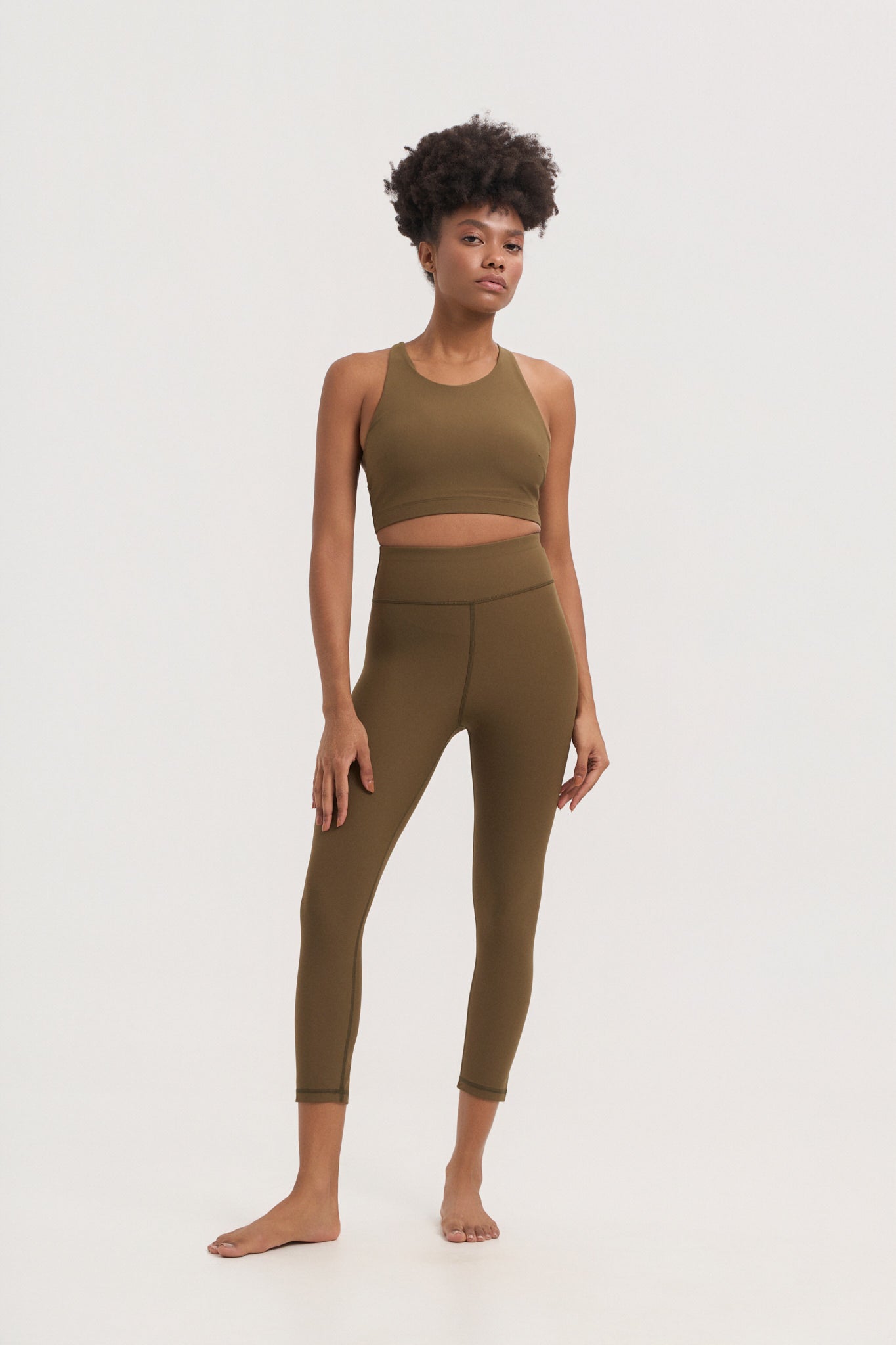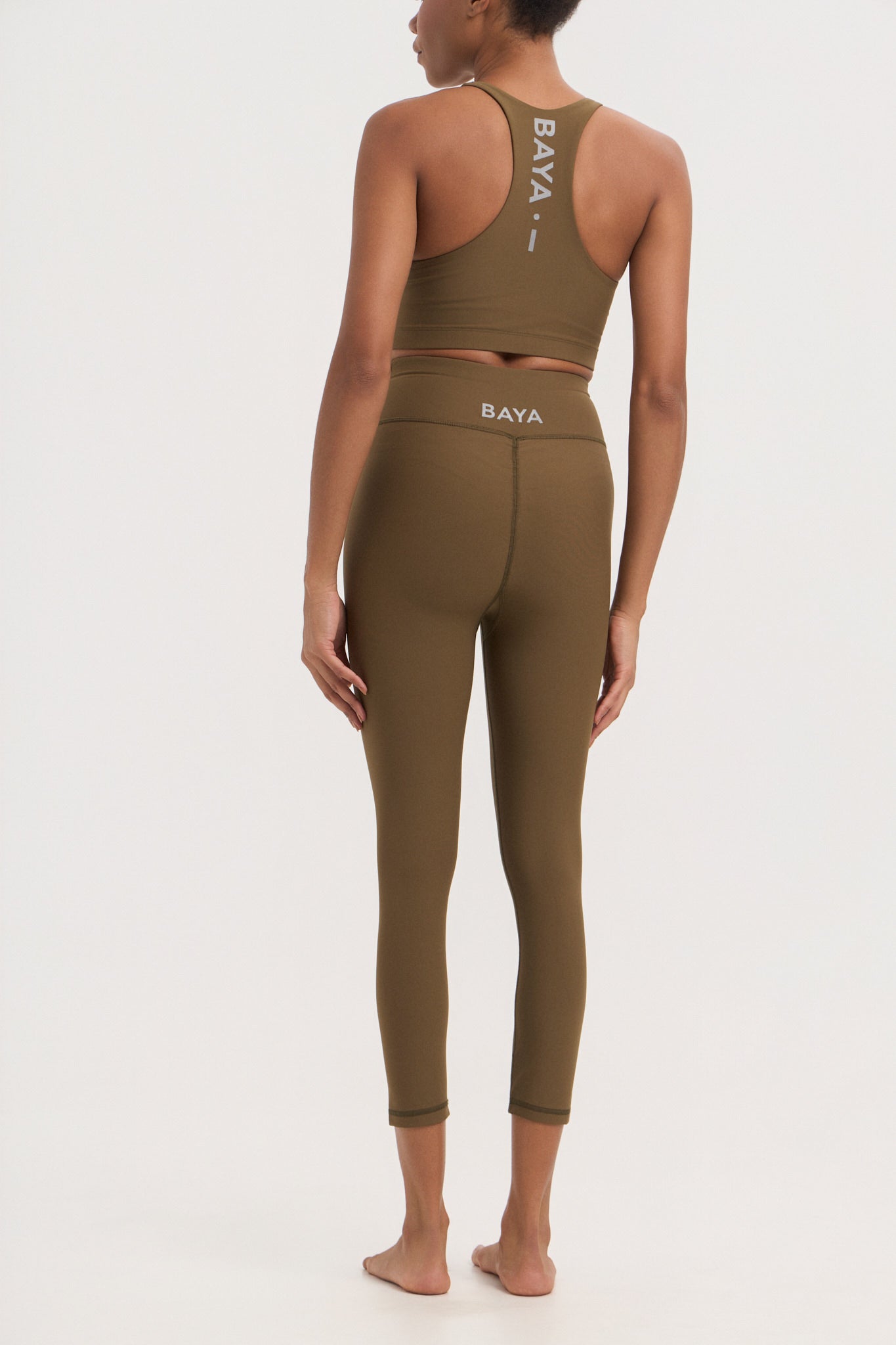 Ψηλόμεσο αθλητικό crop κολάν DRY SHELL. Λάστιχο στη μέση και ειδική σούρα στο πίσω μέρος που ανασχηματίζει (push up) και ανορθώνει τους γλουτούς με τη τεχνολογία butt lift.