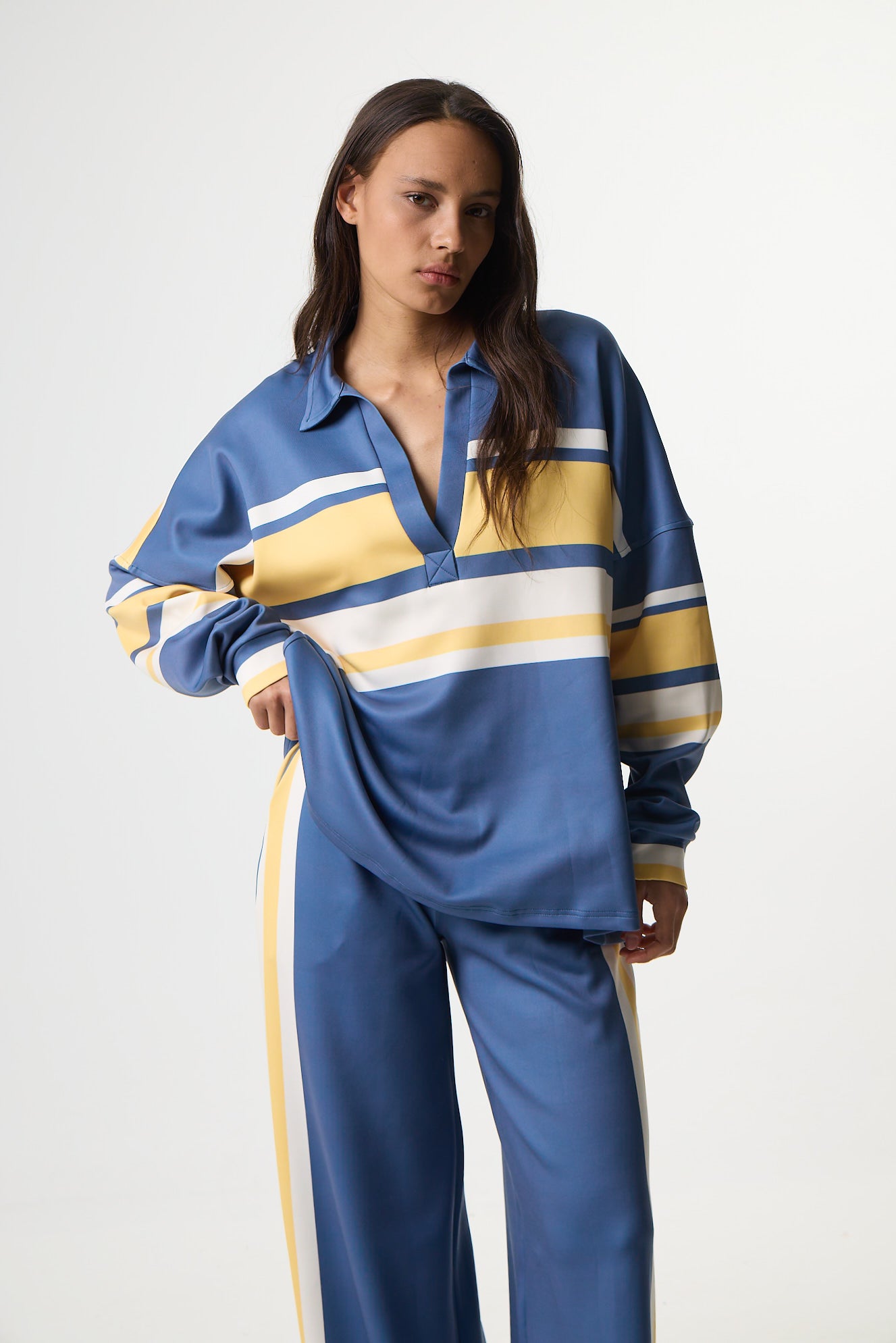 Φούτερ με πόλο γιακά και V λαιμόκοψη. Κανονική εφαρμογή. Dual Fabric τεχνολογία με εσωτερική επένδυση από βαμβάκι.